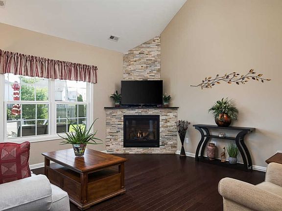Immaculate home - shows like brand new! Gorgeous 4 bedroom, 2000+ sq ft ranch with a finished bonus room over the garage. Home sits on a huge picturesque yard (over 0.3 acres) and on corner lot. Beautiful hardwood runs throughout the main living areas and leads you into the spacious Great Room with its beautiful corner fireplace. Kitchen is a dream with granite counters, a separate pantry, stainless steel appliances, and stunning cabinetry. Owner's Suite is large with a big bedroom and private, ensuite bathroom with a double-sink vanity, separate garden tub and a walk-in, tiled shower. 2 additional 1st floor bedrooms are very nicely-sized with good closet space. Home has an oversized laundry room with plenty of extra storage space. Upstairs over the garage you will find a large, finished bonus room - a perfect 4th bedroom. Step outside and check out the fully-fenced backyard with a treeline for added privacy - there's no shortage or space to relax, play, or entertain!
