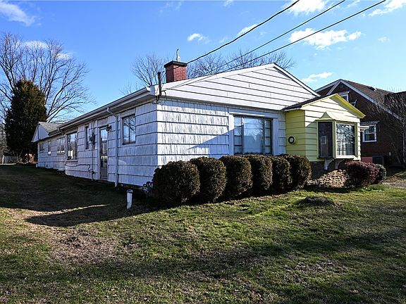 Come to see this "LUSTRON HOUSE" Look it up and you will be impressed that this is one of the most unique homes you will enter. Post WWII home was created with porcelain-enameled panels exterior and interior. No need to paint. The exterior was later covered over, but underneath the shakes is the original built home. This is one of 47,000 homes built between 1948 & 1950. This treasure was built in 36 states. This home has 2 original and 2 additional bedrooms. The owner added on as his family grew with tongue and groove knotty pine throughout the addition. If you want an in-law section in your house, it's there with a full kitchen, bathroom/laundry in the rear of the ranch. This home was built on a cement slab. The front is heated with a gas furnace with radiant heat, the rear is heated with gas hot water, so the tiny basement houses the hot water furnace and small workshop. There's an attached garage and a terrific backyard. There's an HSA Home Warrranty for 1 year and closing.