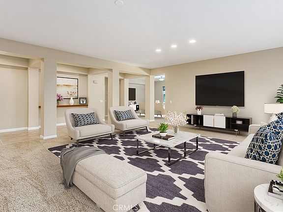 The seamless flow from the kitchen to the living areas creates an ideal space for gatherings or quiet moments. The two-car attached garage adds convenience, and the Alumawood patio cover with a ceiling fan provides a comfortable outdoor retreat.