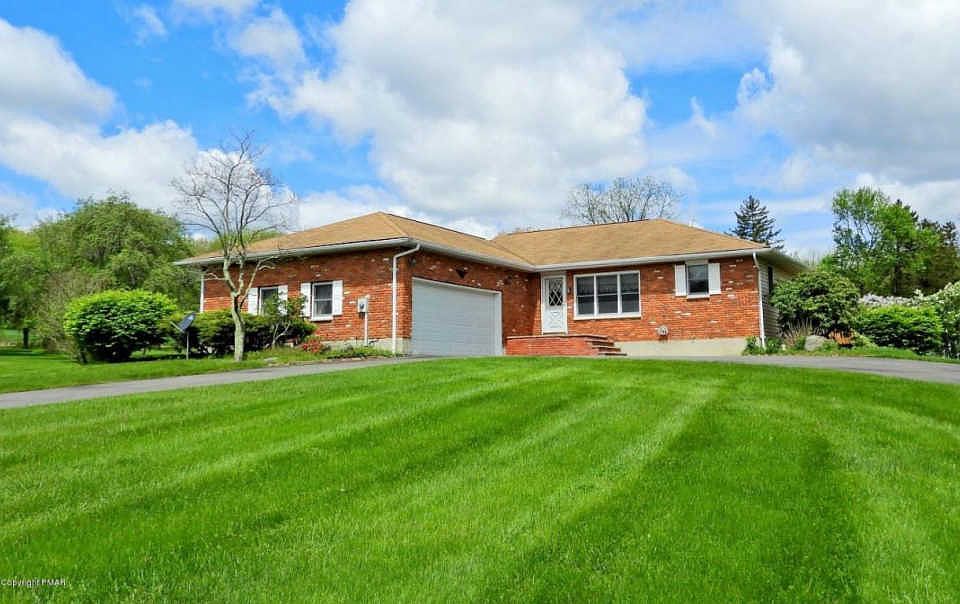 SCIOTA Charming Spacious Brick Front 3BR 2BA Ranch Home Offers OPEN FLOOR PLAN, FULL BASEMENT, Built-In Garage & Paved Driveway Situated on FULL ACRE of Pristine Manicured Grounds on Cul-de-Sac in Desirable Hamilton Twp! NOT IN DEVELOPMENT! NO DUES! Home Features Spacious Eat-In Kitchen w/ Ample Cabinet Space Open to Dining Area, Living Room & Family Room w/ Wood Stove! MASTER BEDROOM has 2 CLOSETS Plus Stunning 2-Room Private Tiled MASTER BATH SUITE w/ DUAL VANITY & Linen Closet Also Separate S hower & Water Closet! 2 Additional Sizable Bedrooms w/ Full Closets & Main Bath! Easy Outdoor Entertaining on the Expansive Back WRAP AROUND DECK Overlooking the Manicured Yard w/ Beautiful Perennial Lilac Bushes! Located in Desirable STROUDSBURG School District! A MUST SEE Home! Call Today for Your Private Showing!