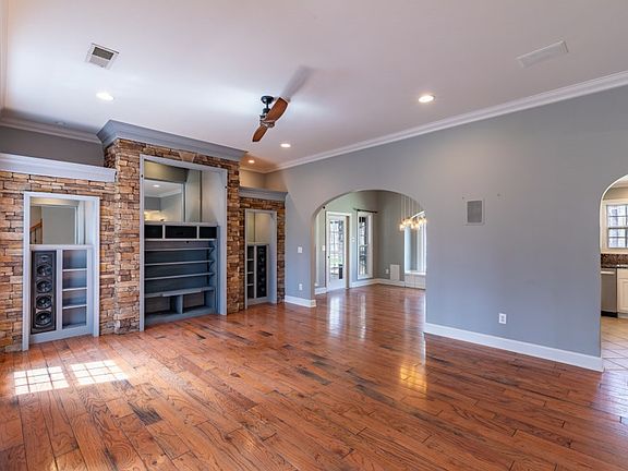 Once you fall in love with this cottage-style home, you're sure to fall head over heels for the variety of amenities in this golf course community! Enjoy main floor living with beautiful hardwood floors in the living room and dining area. Your new living room features custom built-ins surrounded by stacked stones to house your TV, sound system, and favorite books or DVDs. Light fills this home from the many windows including the picture window and bench in the dining area. The well-appointed kitchen offers lots of granite-topped counter space plus loads of cabinets including those forming the peninsula breakfast bar. The carpeted, main-floor primary suite's en suite bath with a jetted soaking tub, double sink vanity, & tiled shower. The main floor includes a guest half bath, pantry, & laundry room. Upstairs is a set of Jack & Jill bedrooms with a gorgeous bath with a double vanity and a separate water closet for the shower/tub and toilet. The backyard of the property is fenced in and there's a utility shed for lawn equipment. The front yard has a beautiful koi pond with a waterfall feature and outdoor lighting. Your favorite spot will no doubt be the screened patio with a stacked stone wood-burning fireplace (gas). Relax in this special space or on the connected pergola-covered patio that's surrounded by flower boxes. The amenities here in Lake Arrowhead are over-the-top and include a gated entrance, an 18-hole golf course, a marina with a boat launch, and so much more!