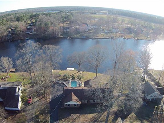 Home is Situated Waterfront with a salt water Pool with a waterfall in Palmetto Shores! Huge Sunroom Looks Out Over the Lake and the Pool - +/-2568SqFt with an Additional +/-1100SqFt of Heated and Cooled Garage/Workshop/Hobby Space - Master Bedroom has Plenty of Room and Walk In Closet and master bath - Don't Miss Out on Your Chance to Have this Amazing Waterfront Home!! Mature trees, pool house/out building. Mature palm trees, huge deck, beautiful landscaping and private dock.