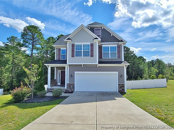 Located on a cul-de-sac, this home has everything you have been looking for! Featuring 4 bedrooms, 2.5 bathrooms, 2 car garage and a large fully fenced in backyard. You will find hardwood floors leading you into the open living room and kitchen. The kitchen offers plenty of space with granite countertops, kitchen island, and SS appliances. All bedrooms are located upstairs with a large master bedroom and bathroom offering double vanity sinks, garden tub, stand up shower and walk-in closet. The walk-in laundry is also located upstairs. Outback you have a deck that overlooks the large fenced in yard. This home is conveniently located to shopping/dining and short commute to Fort Liberty. HOA amenities include a park, pool and fitness center.