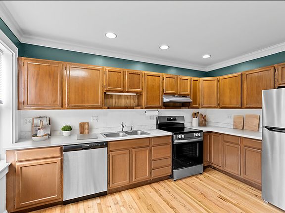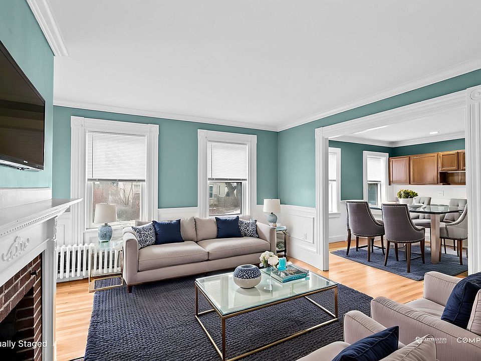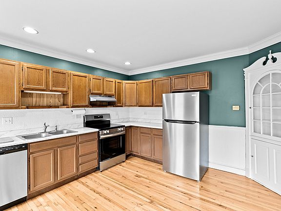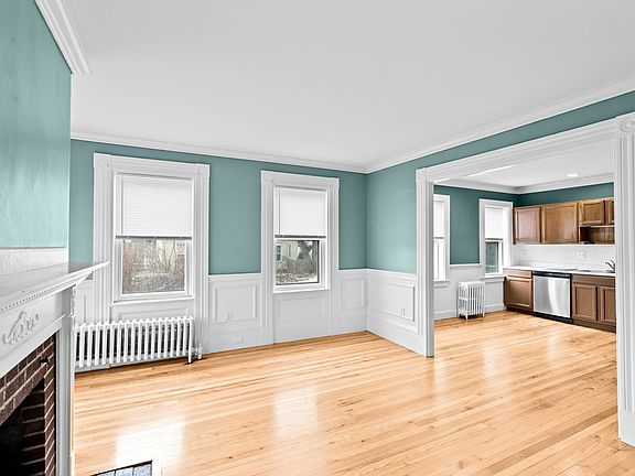 Beautifully renovated 2-bedroom, 1-bath apartment offers a perfect blend of modern convenience and classic charm. Step inside to discover a fully redone interior featuring brand-new stainless-steel appliances, including an in-unit washer &; dryer for your ultimate convenience. The kitchen is a chef's delight with a brand-new countertop and refinished cabinets, providing ample space &; style for all your culinary adventures. The first floor boasts an open floorplan, stunning hardwood floors, fireplaced living room and beautiful wood detailing adding warmth and elegance to the living space. Brand-new efficient gas heat boiler &; 2 ancillary electric baseboard heaters, ensuring comfort throughout the seasons. Step outside onto your brand-new private deck, perfect for relaxing and entertaining, while overlooking a large shared yard. Parking is a breeze with two off-street parking spots included. Plus, pets are negotiable.