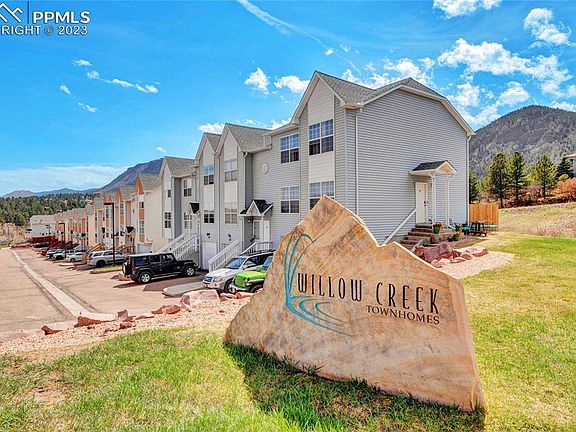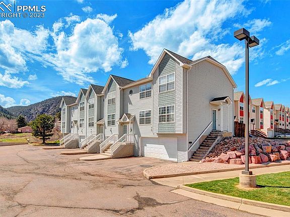 This charming 2-story condominium located within a few minutes of downtown Palmer Lake offers picturesque mountain views and is close to local trails. The kitchen on the main level offers a cozy dining area that has ample light from the large south-facing window. Adjacent to the kitchen is the living room on the main level, which has a gas fireplace, making the space warm and welcoming. The laundry is conveniently located on the upper level between two of the bedrooms. The spacious master bedroom boasts gorgeous mountain views and an en-suite bathroom! A third bedroom is located on the basement level and has its own en-suite bathroom with walk-in shower.