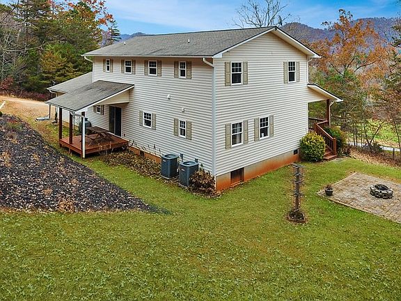Stunning views, large deck, 1 Acre of land in the beautiful Cowee Valley! Don't miss a chance to see this first time on the market - 3 Bedroom 3 1/2 Bath home with a 2 car attached garage. Every bedroom has its own en-suite bath and walk in closets. On the main level you'll find: Tall ceilings, Living room w/ stone gas log fireplace, Kitchen, Dining, Pantry, 1/2 Bath, Back covered patio access, Master en-suite bedroom and easy path to exterior firepit yard area. Follow the stairs with custom laurel hand railing detail up to your loft bonus area - perfect for an office or game area, 2 en-suite bedrooms with walk in closets, large laundry & storage area. Other home features include: Hardwood floors, Central Heat & Air, Stone fireplace, Easy to maintain finishes and built in 2008. Owner is original owner and they've maintained this property very well! Enjoy the WNC mountain views from your large covered deck or have dinner off the pack patio and then enjoy the firepit area. Ample parking and easy to get to town, just about 10 min out.