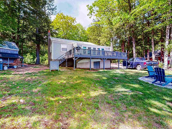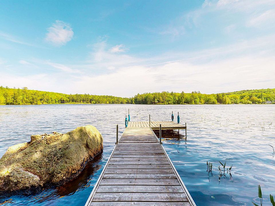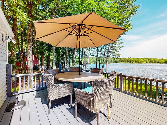 Welcome to your new lake house oasis with 170 feet of waterfront on beautiful Shellcamp Pond! This property is perfect for vacations or year round living and has a great rental history. Enjoy morning coffee on the large deck or spend time with friends and family on the large, flat lot. Dock your boat and swim off of you private dock. Inside you'll find two bedrooms and an open concept living space with wood stove for those chilly NH winters. There's plenty of storage with the outbuildings or walk-out basement.