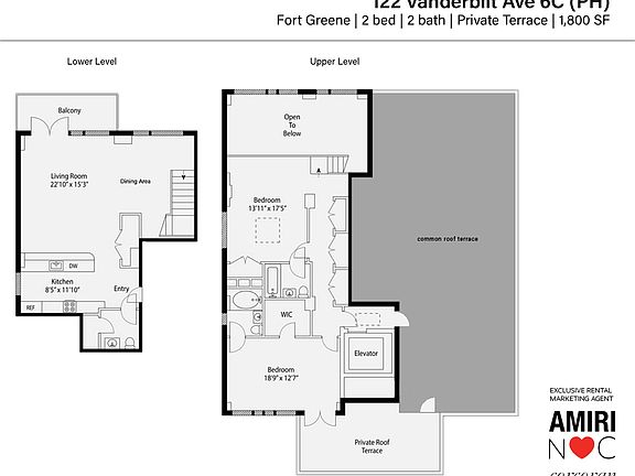 This 1800 square foot apartment home has 2 bedrooms and 2.5 bathrooms. This home is located at 122 Vanderbilt Ave #6CPH, Brooklyn, NY 11205.