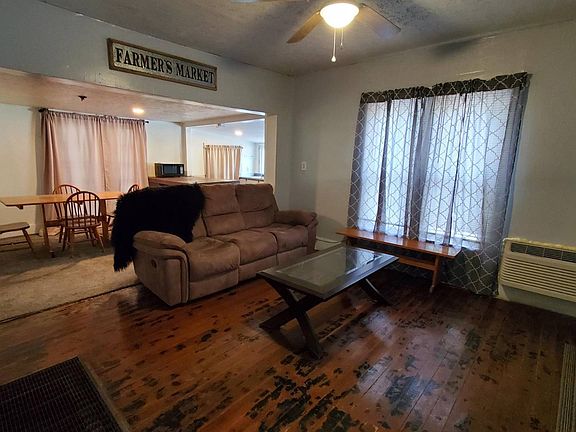 This cute 2-bedroom bungalow will make a great starter home, Flip-It, or rental property. There are original hardwood floors found throughout the living room, dining room and bedrooms. This home is flooded with an abundance of natural light throughout. New vinyl siding, windows, and roof in 2013. New in 2019 was the water heater, electric range, and the window A/Cs and floor furnace were replaced with a new Packaged Terminal Air Conditioner and Heater. Located on a large corner lot with mature trees and a detached single car garage, this property offers quite a bit of potential.