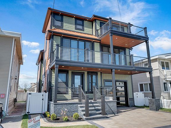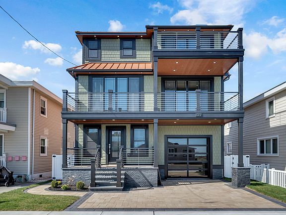 Welcome to your modern dream home in one of the quietest parts of Wildwood Crest! This stunning 4-bedroom, 4.5-bathroom new construction single-family masterpiece is a testament to contemporary design and luxury living. From its sleek exterior adorned with metal roofing, Hardie siding, black PVC accents, custom soffits with extensive lighting, to its thoughtfully crafted unique interiors, every detail of this residence exudes distinctive sophistication. As you step inside, you're greeted by the seamless flow of LVT flooring that guides you through the expansive living spaces. The designer kitchen is a culinary enthusiast's delight, boasting an oversized island counter, quartz countertops, a built-in microwave, 42-inch-high end cabinetry, and an oversized 48-inch stove, and other high-end appliances. The extensive trim work, including shiplap, tray ceilings, custom built in closets, and crown molding with lighting & shadow box, adds elegance to every room. This three-level home features a master suite on the top floor, ensuring privacy and tranquility. Each of the four bedrooms comes with its own en suite bathroom, providing comfort and convenience for all occupants offering a potential master bedroom on each floor. Extra windows with extended sills, and 8-foot patio doors flood the home with natural light and offer breathtaking views of the bay. The fixtures are all Moen, including extra-large dual vanities, dual on demand hot water heaters, Trane multi zoned high efficiency furnaces, dual Wi-Fi thermostats, LED lighting throughout, Bluetooth fans in all full bathrooms, and upgraded additional shower heads. The living room features a custom built-in gas fireplace with a built-in TV for entertaining. The outdoor spaces are equally impressive, with two decks providing the perfect setting for entertaining or relaxing while taking in the panoramic views of Sunset Lake. The solid leaded glass entry doors make a grand statement, welcoming you into a space where luxury meets functionality. The garage door is WiFi powered with a quiet opener, and is all glass with a smoke tint to further emphasize a modern feel. Noteworthy features include an elevator for easy access between floors, a full garage with high ceilings, and an enclosed outdoor shower with porcelain tiling and high-end fixtures. Enter the front driveway of pavers and make your way up the cement steps, with ledger stones, all surrounded by fresh sod and an irrigation system. Imagine starting your day with a refreshing outdoor shower and ending it with the breathtaking sunsets over Sunset Lake – a view that will never cease to amaze. This custom-built masterpiece is a testament to quality and craftsmanship. Don't miss the opportunity to experience the epitome of coastal living in a unique and one of a kind home in Wildwood Crest. Schedule your private tour today and make this exceptional property your new home!