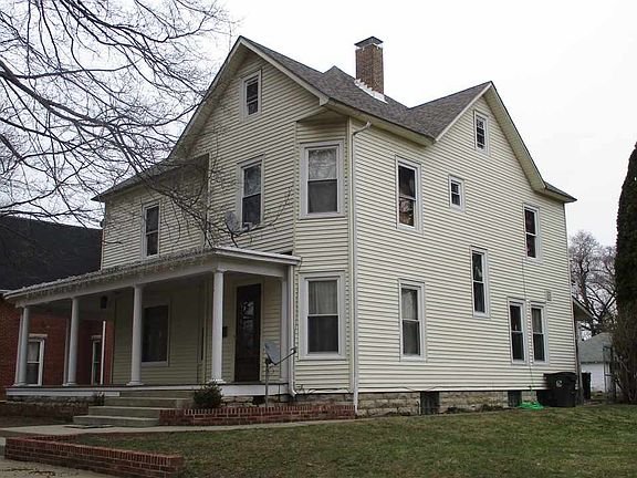 Large 4 bedroom Victorian Beauty has all the charm with original mahogany woodwork throughout, beautiful fireplace in parlor, formal dining room has built in china cabinet, large columns in living room, two sided staircase, New Roof, Newer 3 season room overlooking large back yard that is fenced and a 2 car garage. Enjoy your mornings & evenings on the front porch which offers plenty of room for the whole family. Spectacular bonus space in attic has been finished and includes a 1/2 bath. Great location as it is walking distance to the schools, park and downtown. Windows were replaced about 2006 and are double pane, wood burning stove in basement that can be used with gas heat, unbelievable space in this home....and easy access to the Hoosier Heartland.....move-in and enjoy!!!!