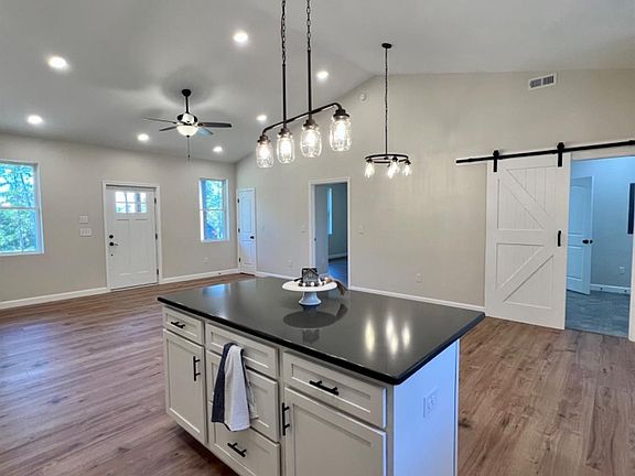New construction home, built with a rustic farmhouse style in mind. Outside the cozy feeling starts w/ a stunning front porch that is adorned with wooden post, plank ceiling, and stampcrete. The front porch is ready for double swings! The main area is open w/ vaulted ceilings that cover the living room, kitchen, and dining areas. Mason jar lighting and a sliding barn door continues the subtle farmhouse feel. Large kitchen space w/soft close cabinetry, quartz countertops, SS appliances, and a separate pantry. The comforting gas fireplace is stunning. Mantle is wormy maple & the fireplace is covered with dry stack rock. Exceptional master ensuite; large bedroom retreat is adjacent to the oversized master bathroom. Master bath has double sinks, built-ins, walk-in shower w/ glass door, and a walk-in closet! Entire home has ceiling fans and canned lighting. If you have been waiting for one level new construction adorned with subtle details, here it is! Call today for your private showing.