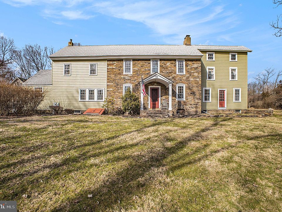 Nestled within the historic Mount Eyre Neighborhood, this exceptional Bucks County gem exudes timeless elegance and modern comfort. Originally crafted by Abraham Harvey circa 1750, this Pre-Revolutionary War home boasts a storied past while seamlessly blending historic charm with contemporary conveniences. Spanning three gracious levels, the home showcases original wide plank floors, high ceilings, and exposed beams, creating an atmosphere of rustic sophistication. Sunlight streams through beveled glass windows, illuminating the spacious rooms adorned with custom moldings and original wood doors, each exuding its own unique character. The heart of the home lies on the first floor, where an updated kitchen awaits with granite counters, built-in appliances, and a propane gas stove, complemented by a large walk-in pantry. A grand great room, anchored by stone fireplaces at each end, invites gatherings with built-in window seats and a Dutch-style barn door leading to the front porch. Flexible living spaces abound, with two rear rooms offering versatility as a family room and office, complete with a full bathroom and separate entrance ideal for a home office. Ascend the rear staircase to discover a private master suite, featuring a newly renovated bath with dual sinks and a spacious dressing room, with access to a third-floor retreat perfect for a home office or walk-in closet. The second floor hosts three additional bedrooms, two boasting stone fireplaces, and an updated full bath, accompanied by convenient upstairs laundry. A fifth bedroom on the third floor offers hardwood floors and undeniable charm. Outside, the property dazzles with its expansive three-acre grounds and charming exterior buildings. A large Double Door barn, equipped with electricity and plumbing, doubles as a garage and captivating entertainment space on the upper level, complete with projection TV, half bath, and climate control. Updates abound, including central air, a new boiler, roof, and electrical upgrades, ensuring modern comfort without compromising the home's historic integrity. With top-rated schools and easy access to I-95, Princeton, New York, and Philadelphia, this enchanting residence offers a truly unparalleled lifestyle opportunity. Come experience the timeless allure and unmatched quality of this remarkable Bucks County treasure.