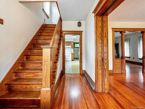 Charm abounds in this vintage colonial with covered front porch and BRAND NEW ROOF! Natural light through the newer Thermopane windows highlight the open staircase, picture frame hardwood floors, gorgeous pocket-doors, and original woodwork. The clean kitchen can easily accommodate an island and/or eat-in area and awaits your updates. Just off the kitchen, a mudroom includes convenient laundry hook-up. Formal dining room features stately pillars and opens to living room with front-facing bay windows. Finished walk-up attic, with clever built-ins, can serve as a fourth bedroom, art studio, or playroom. Corner lot features shaded back patio, spacious driveway, stone walls, and solidly built two-car, detached garage. Come see 122 Walnut Street today...it WALNUT disappoint!