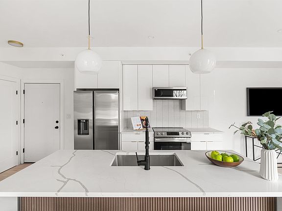 The Bradley is Weymouth Landing's newest offering! A perfect blend of scale and sophistication. Consistent modern design and top-notch amenities put this new development in a class of its own. As you enter this one bedroom condo, you'll be greeted by an open-concept living space flooded with natural light, creating an inviting atmosphere for both relaxation and entertainment. The spacious living room flows seamlessly into a sleek kitchen complete with European-style flat cabinets, stainless steel appliances, quartz countertops, and ample cabinet storage space. The full size bedroom off the living area features generous closet space and room to add your personal touch. This elevator building offers garage parking and multiple common amenities including a gym, common roof deck and a large courtyard. Located in red hot Weymouth Landing which is in close proximity to many restaurants and shops as well as the commuter rail and highway. A truly one-of-a-kind offering!