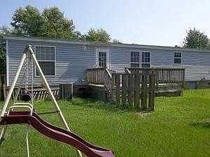 Manufactured home on canal front lot with huge double garage in back yard. This is a Fannie Mae Home Path Property