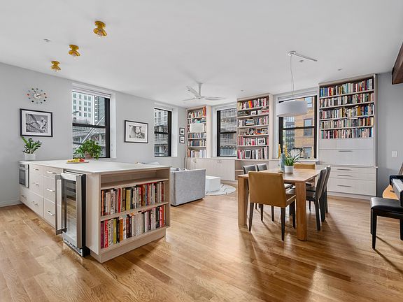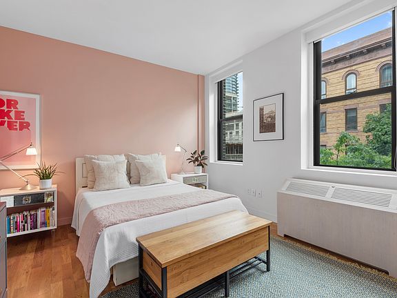 Welcome to unit 2k, in the Pencil Factory Condominium. At 1280 square feet this oversized 2-bedroom 2 bathroom is the perfect home to enjoy the lively waterfront area of Greenpoint. This beautifully redesigned corner unit features one-of-a-kind renovations offering the first fully renovated unit for rent in the Pencil Factory. The unit boasts double exposure and a fantastic layout. The high ceilings, are emphasized by eight oversized windows taking in the incredible light throughout the day. The most desirable layout in the building with winged bedrooms separated by an incredible open concept living space. Offering a massive living and dining room with pristine oak hardwood flooring throughout. The sprawling kitchen was masterfully redesigned to increase storage, upgrade all the appliances, and add delightful touches such as a drawer microwave and a wine refrigerator. The island is a chef's dream work space, perfect for entertaining and offers an abundance of cabinet storage. The primary bedroom is king sized and has a full wall of customized closet space. The in unit primary bath has been gut renovated for a completely refreshing experience. Offering a separate shower and deep soaking bath tub creating a spa like experience to pamper yourself after a long day. The second bath has a fun updated design as well with colorful penny tile to brighten your mood. This bathroom was reinvented with a walk-in shower. It's perfectly situated near the second bedroom. Updated PTAC units throughout the apartment are housed in custom cabinets, providing a quieter and more aesthetically pleasing heating and cooling experience. The full-sized washer/dryer laundry closet bring true convenience to this amazing opportunity to live in a condo with all the amenities of modern living. There is a private parking space available for rent with this unit for a separate monthly fee. Huge walk-in storage cages are also available in the building for a separate monthly fee. Originally built in 1872 for the Eberhard Faber pencil company and now one of Greenpoint's only luxury condominiums, renovated and rehabbed in 2009.The building offers all occupants a fully automated entry door system with package room, a residents lounge, newly renovated fitness center, a brand new playroom, bicycle storage and common roof deck enhanced by a restroom for convenience while entertaining on the spectacular roof with sweeping city and harbor views. All common spaces offer WIFI, providing a seamless connection while you enjoy the amenities. No separate amenity fee! Located on the Greenpoint waterfront, just one block to the Greenpoint Ferry landing and two short blocks to the G train, your commute will be a breeze. Transmitter park and pier couldn't be closer! You'll enjoy movies from the grassy field and walks along the pier. With countless new cafes, shops, bars, and restaurants, including Michelin rated Bonnie's, Nura, Oxomoco, Chez Ma Tante, Di and Di, and Rule of Thirds a stone's throw away.