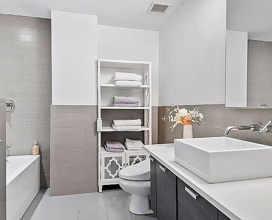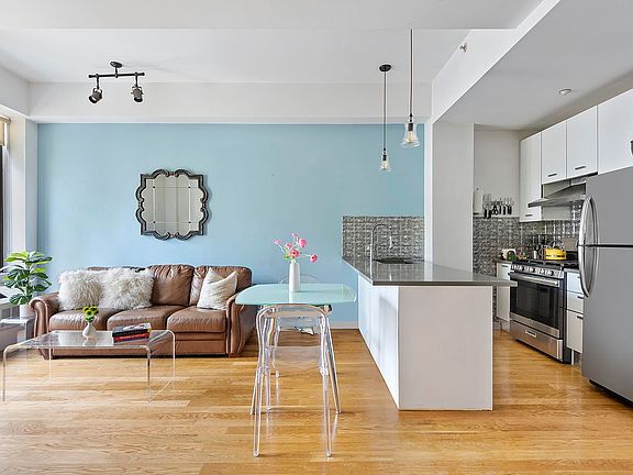 Amenities include a beautifully curated and furnished common roof deck with sweeping views of the Manhattan skyline and East River, virtual doorman system, fully equipped fitness center, children’s playroom, lobby, package room, party room, full-time super, and bike storage, and extra storage units for rent (subject to availability). Pet friendly, too!