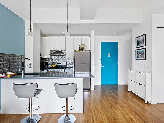 The elevator building – formerly the 1872 Eberhard Faber Pencil Company – was converted to condos in 2009 and is centrally located in the heart of the vibrant Greenpoint waterfront offering a wealth of nearby restaurants, cafes, bars and shops along with WNYC Transmitter Park and the American Playground. Moments to the East River Ferry and three blocks to the G train.