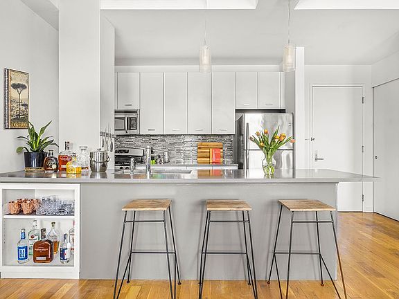 Among its numerous amenities, the Pencil Factory offers a sprawling common roof deck with panoramic city views, a gym, party room and pool table, a virtual doorman and package room, private parking and private storage (both available for rent on a first come first served basis), complimentary bike storage, and full-time super. Located in prime Greenpoint, just around the corner from Franklin Ave and neighborhood eateries and shops, with the Macy's annual fireworks show on full display right out of your window. Just 3 blocks to both the G-train and the East River Ferry.