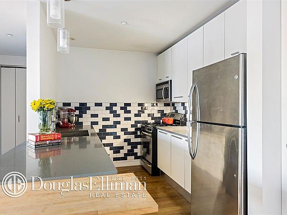 Unique opportunity in Prime Greenpoint to own a one bedroom with an expansive private roofdeck in Greenpoints' premiere condominium building, The Pencil Factory. The open kitchen is a chefs paradise with Caesarstone countertops, stainless steel appliances, subway tile backsplash, and an upgraded Bosch dishwasher. The bathroom has Danze fixtures and a deep-soaking tub. The washer and dryer is also conveniently located next to the bathroom too. Elegant modern stairs from the living room lead you up to a stunning and expansive roof deck with vistas of both Greenpoint, Manhattan and beyond! This eastern facing Sun-drenched home with loft-like high ceilings and oak hardwood-floors throughout make this the perfect oasis after a busy day. The Pencil Factory condominium also features high end amenities including a common roofdeck, virtual-doorman, full-time super, gated private off street parking, package storage room, common areas with kitchen and pool table, fitness center, storage lockers, bike storage and a lovely courtyard. Just 2 blocks to the India St. Ferry a Citi Bike dock and 3 blocks to the G-train you can get anywhere you need to be in no time. Plus, you're just a block from the rapidly changing Franklin Street which has restaurants, bars, and shopping for everyone. This building is also pet friendly. Tax abatement is in place through 2025.