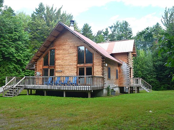 Discover the quintessential Vermont lifestyle in this charming 5-bedroom, 3-bathroom log cabin home, ideally nestled just minutes away from both Stratton and Mount Snow ski areas. Situated on nearly 3 acres of lush, tree-covered land, this rustic retreat offers a serene escape in the heart of the Green Mountain State. As you step inside, you'll be greeted by the warmth of two pellet stoves that ensure cozy winters. The spacious cathedral living and dining area provides the perfect setting for gatherings and relaxation. Exposed wooden beams and the inviting ambiance of the fireplace create an authentic mountain lodge atmosphere. The location is a dream for outdoor enthusiasts. Just down the street, the Green Mountain National Forest beckons with its pristine beauty and recreational opportunities. The VAST snowmobile trail system is easily accessible, promising endless winter adventures. Nearby Grout Pond is a picturesque spot for fishing and kayaking. This log cabin offers the ideal blend of tranquility and convenience, allowing you to enjoy all that Vermont has to offer. Whether you seek thrilling ski slopes, tranquil forest hikes, or simply a serene escape from the hustle and bustle, this Stratton gem has it all. Don't miss the opportunity to make this log cabin your year-round sanctuary in the heart of Vermont's natural beauty. Two lower level bedrooms do not have legal egress.