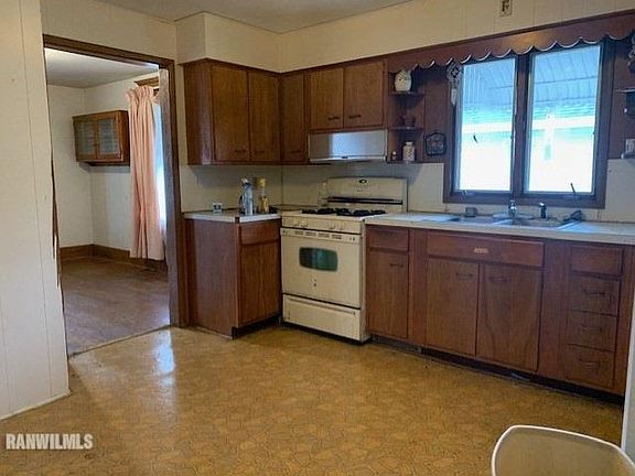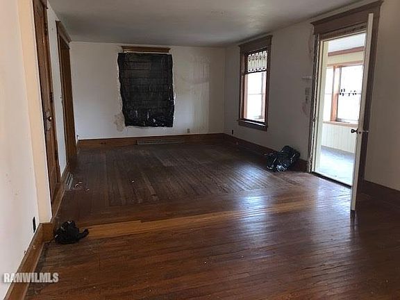 Lots of potential! Front enclosed porch has stained glass windows. Attached garage to the rear of the home. Alley access, that also butts to the town park! Property needs TLC, and is being sold AS-IS Damage from a busted pipe.