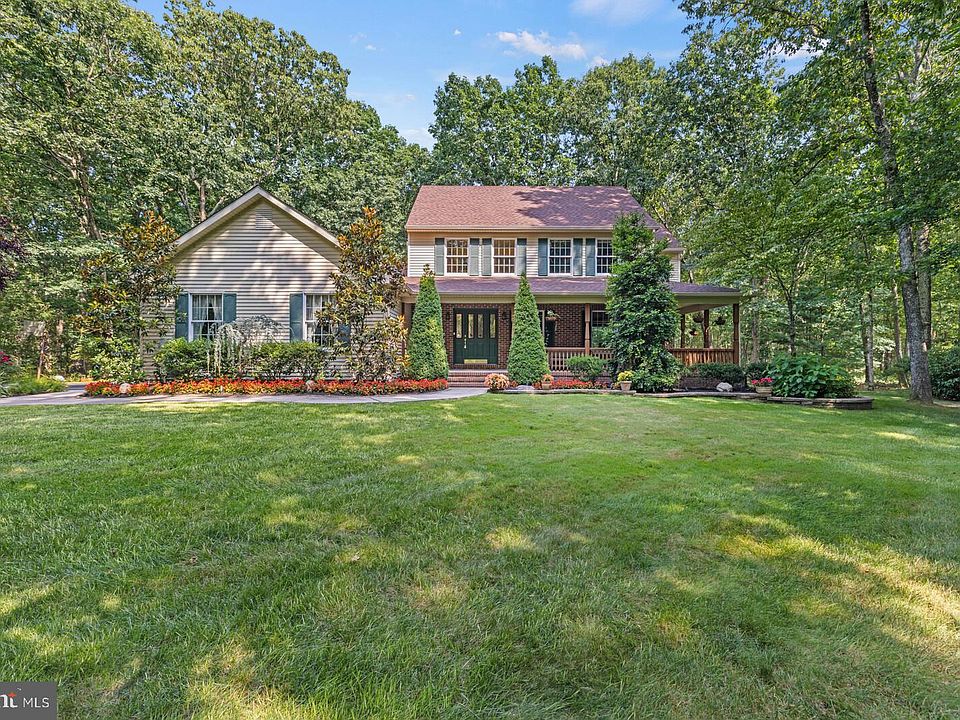 Highest and Best offers Due Monday by 2pm. picturesque 4 bed, 2.5 bath farmhouse sits on a quiet cul-de-sac in the desirable Winchester Ridge development. The home has been lovingly cared for and meticulously maintained both inside and out for over 25 years and is truly one of a kind. The house sits on 3.3 acres and is set far enough back from the street to truly enjoy the gorgeous landscaping that makes it look like something straight out of a Thomas Kinkaid painting. As you come down the walkway you will see a large, beautiful front porch that is perfect for sitting to have your morning coffee, winding down at night or just taking some time to enjoy the beautiful outdoors. Upon entering you will see gorgeous new flooring, a recently updated kitchen, fresh paint throughout and a stunning view of the outdoors through the many windows that sit across the back of the house. The first floor also includes a half bath, 2 coat closets, large pantry and laundry room with walkout access to the side of the house and entry into the garage. All 4 generously sized bedrooms are located upstairs along with a tastefully updated full bathrooms both in the hallway and in the master bedroom. Something extra special that you will not want to miss is the secret door that goes up to the large attic space. This is great for storage or can be finished for an additional living area. The basement is partially finished and provides even more opportunity for the new owners to make it their own. Before leaving this property, one thing that you DO NOT want to miss is the incredible back yard space. This is something that truly sets this property apart. Take a walk through the carved out nature trail that has been maintained by the owners and makes a full loop around the woods back to the house. This is perfect for walking your dog or just taking a stroll in nature right in the comfort of your own space. *New septic installed in 2020, New roof in 2022, 2 zone HVAC (downstairs 2021, upstairs 2012) Don’t wait on this one! It will go fast!