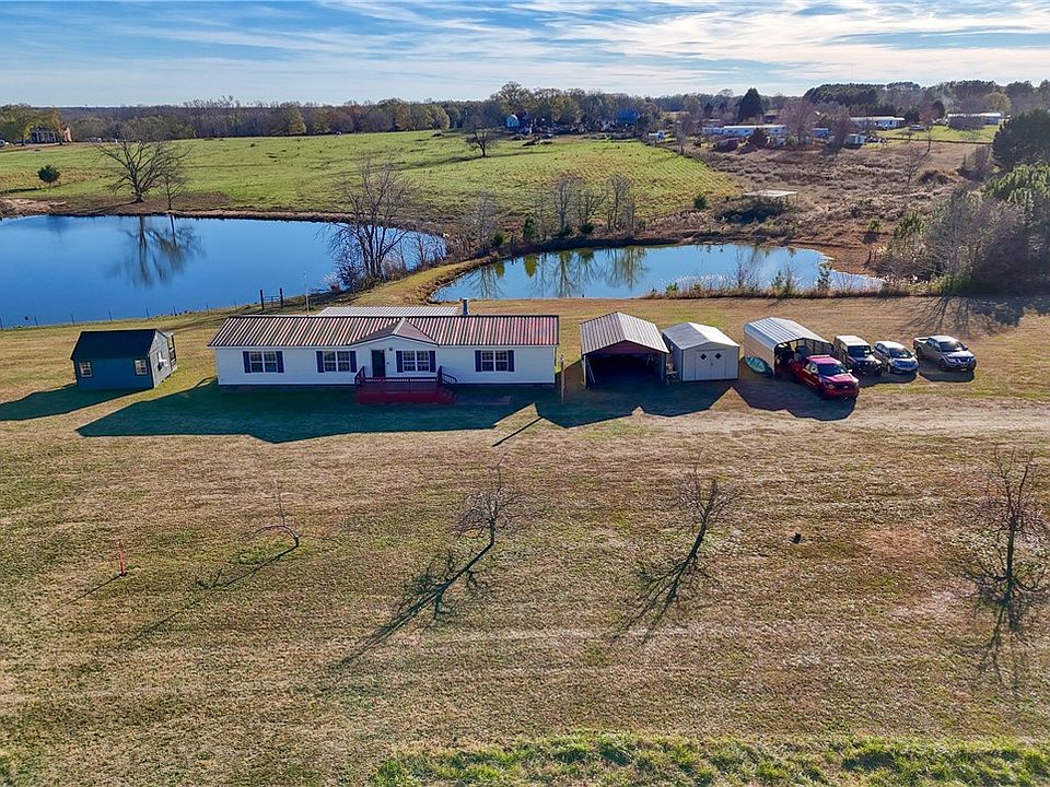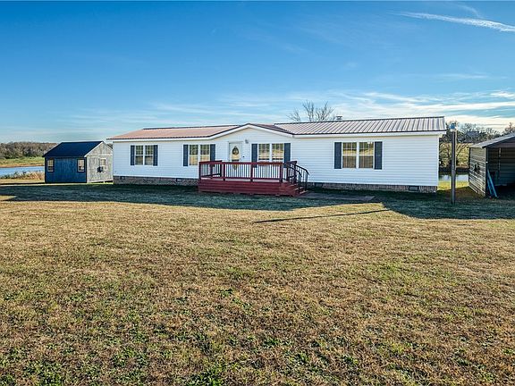 Country views abound at this well-kept home on a permanent brick foundation, which has been de-titled and will qualify for any type of financing. Nestled on 3 acres of beautiful countryside with green pastures and peaceful fishing ponds, this property offers privacy, space, and stunning natural surroundings. This nearly 1,700 sq. ft. home features 3 bedrooms and 2 baths, along with numerous updates. Enjoy all-new LVP flooring installed just two years ago for a fresh, modern feel. Outdoor living shines here with a new front deck, a 12x31 screened-in back porch added in 2022, and a 12x14 composite deck with hot tub added in 2024—ideal for relaxing or entertaining. In addition to the main home, the property includes a brand-new 11x14 detached office/craft room/man cave with its own porch, plus two detached carports that will remain with the property, offering excellent additional storage and parking. Whether you're seeking a full-time residence, weekend retreat, or investment property, this charming country haven combines modern updates with peaceful rural living. This is truly one you have to see for yourself to appreciate. Come and get your piece of paradise!