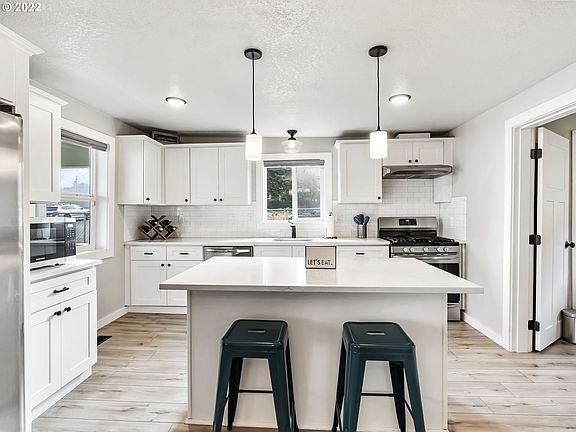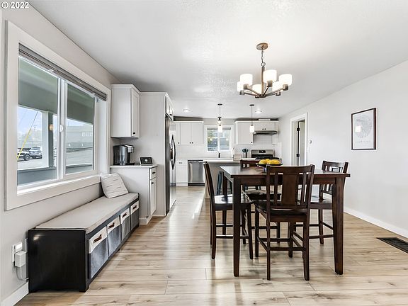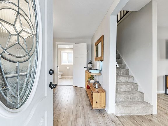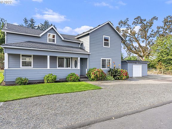 Completely remodeled farmhouse only a 1/2 mile from downtown Oregon City. Open concept kitchen and dining with white cabinetry, quart countertops, stainless steel appliances and gas range. Bedroom and full bath on the main. Upstairs boasts a peaceful primary suite, 2 additional bedrooms and new carpet throughout. Detached oversized garage + 27'x50' parking pad for toys. Brand new heat pump. Nothing to do here except relax and enjoy!