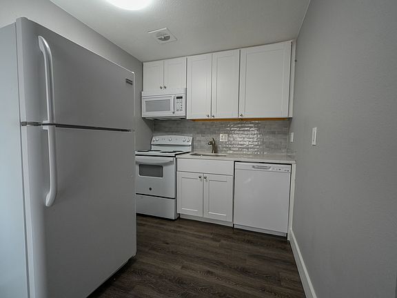 Fully renovated boutique apartment with drive up covered parking to private fenced 10' X 16' gated patio. Kitchen Has Quartz counter with Range, Microwave, Dishwasher, and Fridge. Bathroom completely redone. Washer and dryer in unit. Vinyl plank flooring in main living area. Three blocks from light rail station. Up and coming area conveniently located between Belmar, Casa Bonita and Sloans Lake. Renter pays an additional $60/month to owner for water, sewer and trash. No smoking inside unit. Pets allowed for additional $25/month fee. One covered parking space per unit, plus additional off street parking available on site.