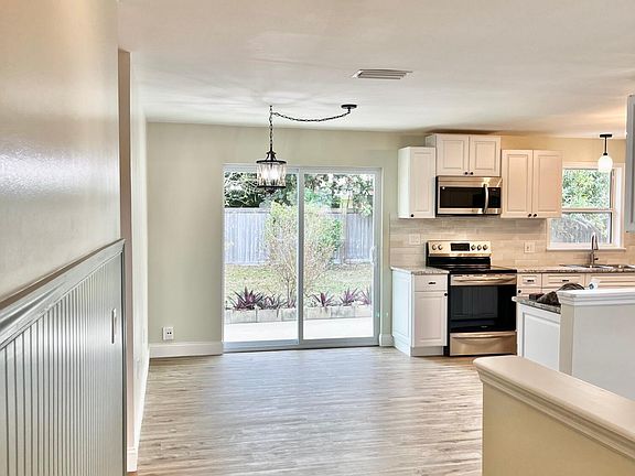 Newly remodeled home in Merritt Island. New bathrooms, kitchen (including granite countertops), new stainless-steel appliances, new luxury plank vinyl flooring throughout, new windows, sliding door, light fixtures, water heater, and more. Roof and HVAC replaced in 2022. New crown molding and dimmable lights in living room. Accent wall in entry way. Partially new exterior paint. All newly painted interior. Newer secondary freezer in utility room. Fully fenced back yard.