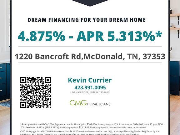 Welcome to your dream home in McDonald, Tennessee! This stunning new construction offers the perfect blend of luxury and convenience, featuring 4 bedrooms, 2.5 bathrooms, and a 2-car garage. Just 10 minutes from the vibrant Cambridge Square in Ooltewah and close to I-75, this residence is ideally situated. The spacious master suite on the main floor provides privacy and easy access, while beautiful hardwood floors enhance the main living areas. The custom kitchen, with its top-of-the-line appliances and stylish cabinetry, is a chef's delight. Enjoy the outdoors on your nice, private covered porch, and take advantage of the generous 1.4-acre lot for outdoor activities and relaxation. Plus, benefit from the low Bradley County taxes. Homes in this highly sought-after area rarely come on the market, so seize this opportunity while it lasts! Buyer to verify all information deemed important.