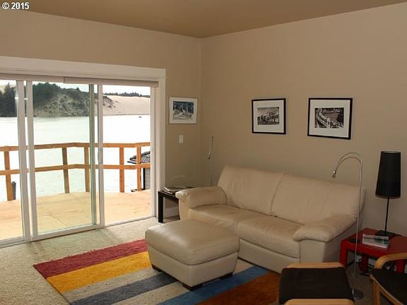 Riverfront condos in the heart of "Old Town Florence" Enjoy the panoramic Sunsets, River, Dunes & Bridge views from your own private balcony. Top floor with elevator access. Granite counters, stainless appliances, eat bar in great room. Master on opposite side for privacy; guest room plus a separate office. Great weekend get away, vacation rental or your new home on the Central Oregon Coast. Master with slider to deck.