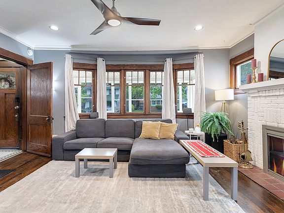 Versatile bonus roomOversized two-stall garageInviting covered front porchBeautifully refinished hardwood floorsTwo fully remodeled bathrooms