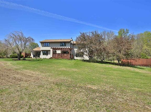 Country acres w/pond &pool. Vaulted two story home. Tiled 1st floor FR with wood burning stove, eat in kitchen w/slider to pergola. Fr. DR. LR open to patio. Media/music rm. Den/guest bedroom. laundry room & half bath. 2nd fl private master suit with granite. Two more large bedrooms and full jetted bath. Large windows throughout w/scenic views of 5+acres.Beautiful finished basement. Landscapes and gardens .Bell Top School. Minutes to downtown Albany, 787 & I-90. Open Sun 11/1 12-2