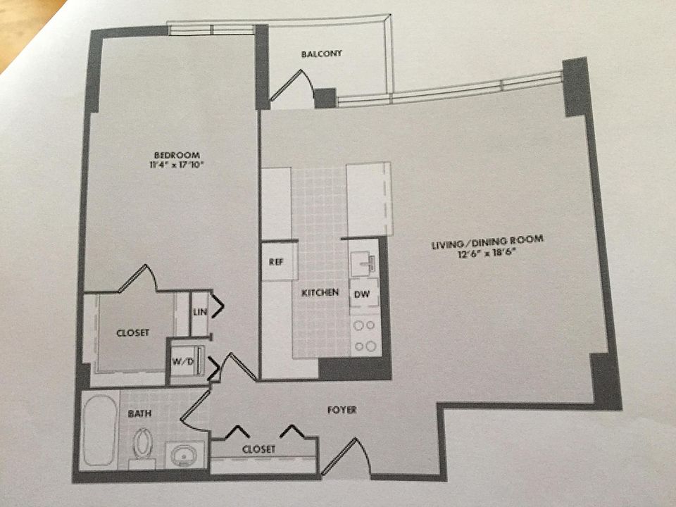 Beautiful and spacious one bed one bath end unit condo. Garage parking, granite counters, Stacked W/D, walk in closet, lots of windows. Amenities: Large pool, Fitness Center, Club Room, Media Room. Condo fee included major utilities. 2 Blocks to Metro. Utilities, condo fee and 1 assigned garage parking is included in the rent. Move-in fee: $500.00 Utilities, Condo Fee and one garage parking space included in rent
