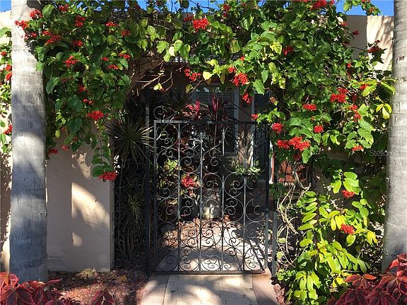 European flare, island privacy of Boca Ciega Isle, Sultry New Orleans, spunky Key West and charming Tuscan valleys inspire this special home: timeless style with modern amenities. With a custom circular driveway, wrought iron gateway, entry courtyard with a fountain, Italian porcelain floor tiles, french doors and views of calm open water; all inviting, you will find. Upstairs, above a bright large living room, is a spacious loft- relax in your hammock on your second story lanai. Expansive view of Boca Ciega Bay offers stunning nightly sunsets. Built in 2017, your private dock gives access to Intracoastal Waterway and the Gulf of Mexico. Xeriscaped gardens with jasmine, tropical palms, blooming flowers, coral island and backyard outdoor fountain with plenty of room for a pool. A large waterfront main floor master bedroom ensuite and large walk in closet, offers door to outside. The 3rd bedroom has it's very own ensuite as well. The 4th bedroom is currently an office. The kitchen has beautiful custom woodwork cabinets, wine refrigerator, stainless appliances, and tumbled marble backsplash offering the perfect central gathering area. This home is inspired by the most romantic destinations, ideal for entertaining or escaping from the world with complete privacy on an oversized lot with courtyards and garden areas from which to enjoy this spectacular view. The white sugar sands of St. Pete Beach are a few blocks away, 15 min. to downtown St. Petersburg and 30 min. to Tampa airport.