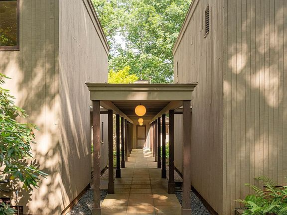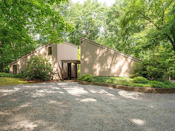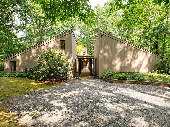 Contemporary designed home located on a tranquil 13+ acre lot off Buck Mountain RD in Earlysville, VA. Main house is 1.5 stories and includes a first floor primary bedroom with adjoining en suite bathroom. The living room enjoys an open plan with high ceilings and a wood burning fireplace that accesses an outside deck. The dining room is located just off the eat-in galley style kitchen, and the two bedrooms up share a Jack and Jill bathroom. The covered porch from the main house leads to a cozy Studio, with a full bath, custom built-in book shelves, and a loft that any writer, artist or draftsman will surely delight in. A detached two car garage compliments the offering.