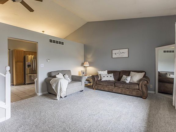 Don't miss this conveniently located 3 bedroom, 2.5 bath home in Hillcrest Subdivision. Great floorplan with cathedral ceilings and main level offers a Living room, Open kitchen, Family room with fireplace, and half bath with laundry! 3 bedrooms up including Primary with ensuite bath. New carpet and paint throughout much of the home, as well as new toilets, some doors, garage opener and many appliances which stay with the home. Finished basement offers additional living space. Enjoy the deck in the private backyard with no direct backyard neighbor!