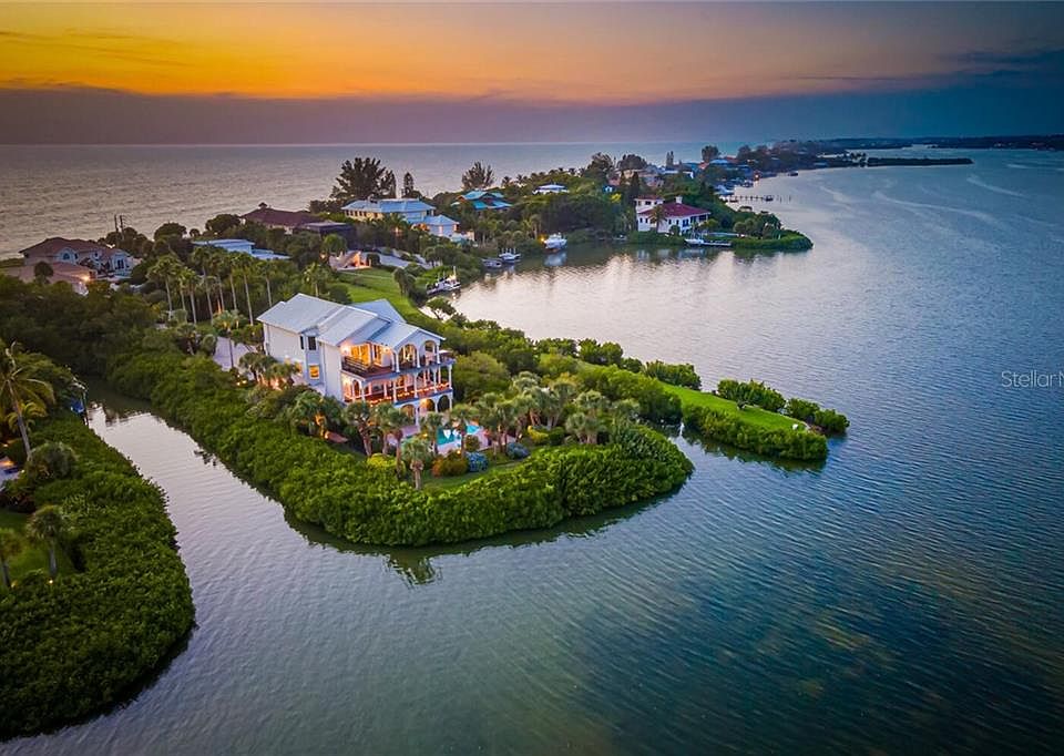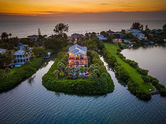 Welcome to "Casa sur la Baie" with perhaps the most spectacular intracoastal waterway views on Casey Key, the best-kept secret on Florida's west coast near Sarasota. The residence sits 220 feet from the road on this 8-mile barrier island and is secluded on a peninsula with canals on both sides, separating the property from neighboring lands. The island is noted for its low density and conservation measures to prevent high rise development. Here you will find an eclectic mix of both manicured estates as well as Old Florida ambiance, offering the ultimate relaxed lifestyle to calm the soul. The approach is through a gated entry, down the long pavered driveway circling to the winding staircase where you enter the residence on the north side of the property. The main living area--sitting high at 16+ feet elevation--offers sweeping 270 degree vistas from the wrap-around terraces, creating an experience as if you are perched on a ship's bow watching other yachts go by. Renovated in 2007, the 4,000 + s.f. home has a casual elegance and is intentionally designed to offer spaces for gathering family and friends, as well as private spaces. With three ensuite bedrooms, an office, studio, living room, family room opening to the dining room, gourmet kitchen with Wolf/Subzero appliances, the master suite includes a sitting area used as an additional office, and amazing closet space. The gardens are lush with native plants attracting butterflies, a fig tree that produces a healthy harvest each year, as well as night blooming cereus cactus that begins its blooms in the daytime. Whether you wish to enjoy dining on the balcony, swimming in the newly resurfaced pool, fishing/boating from the dock, or taking long walks on the sand from your private deeded access to the beach, Casa sur la Baie promises to delight the senses. With proximity to excellent schools, golf courses, tennis, shopping, and restaurants, there's no better time or place to be--nowhere but here. Some furnishings are included.