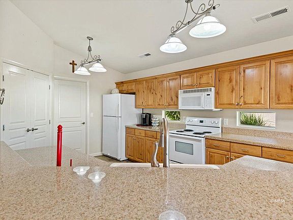 On the course, but rarely find a golf ball in the yard. Sitting just off the 15th green on the Oasis Canyons Course, you will find this beautiful home. Vaulted ceilings, third bedroom works as a den, and open concept. Granite countertops, large pantry, and easy access to dining and living room from kitchen. Soon you will be ready to host Thanksgiving dinner in this home on the golf course.