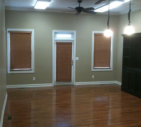 Ground level, 1200 sqft with a 500 sqft basement (for storage) with a fantastic utlity room for washer/dryer hookup and utility sink and rear entry. High ceilings and ceiling fans in both living room and bedroom areas. Hardwood floors and blinds, wired for surround sound. Brightly lit, pendant lighting over dinning area. Two story brick building renovated in 2009. Previous tenants were married couples saving for first home, loved the large open floor plan, great for entertaining friends and family. Water/sewage/trash are included, both electric and gas are required. Security system and cable/internet is available for the additional cost from the providers.