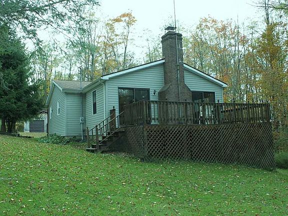 Privacy galore! Ranch home sitting on 7.3 acres. Perfect for primary residence, second home or hunting camp! Full, walk-out basement with garage door, perfect for expansion. Darling hickory kitchen. Floor to ceiling brick fireplace with wood burning insert and sliding doors to large deck. Large detached garage. Air conditioning!