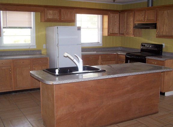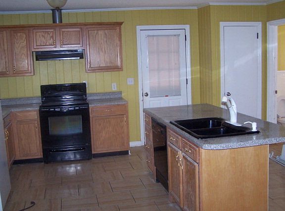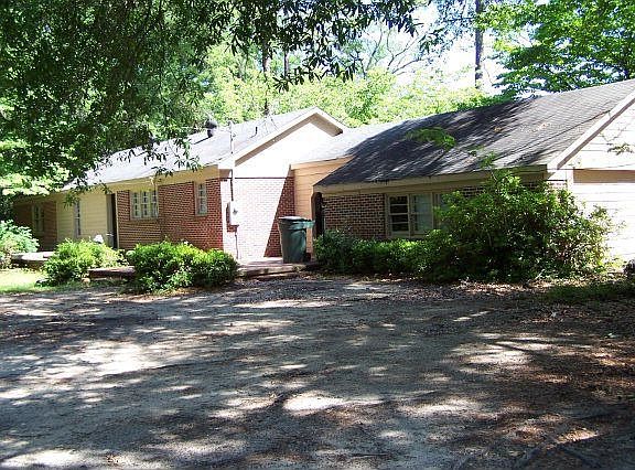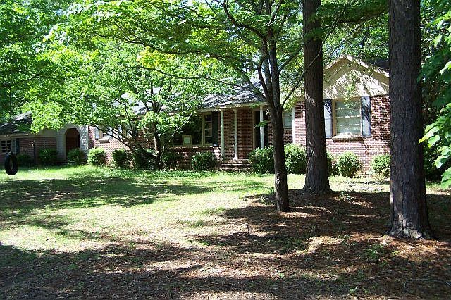 Brick house with dogwoods and oak trees in yard. The garage was closed in and could be used as a large play room or office.