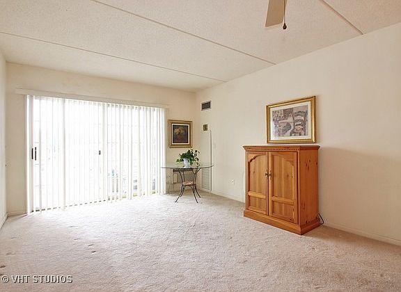 Warm & wonderful! Secure Senior Building for 62 & older. Friendly environment in heart of Glenview.Bright condo features 2 Bedrooms, 1 Bath, Kitchen with eating area, spacious combination Living Rm/Dining Rm with sliding doors leading to large balcony.Building amenities include large Lounge Room, Party Room, Kitchen, Library, & Exercise Room.Heated garage with leased parking.Walk to train, shops & library.Low taxes!