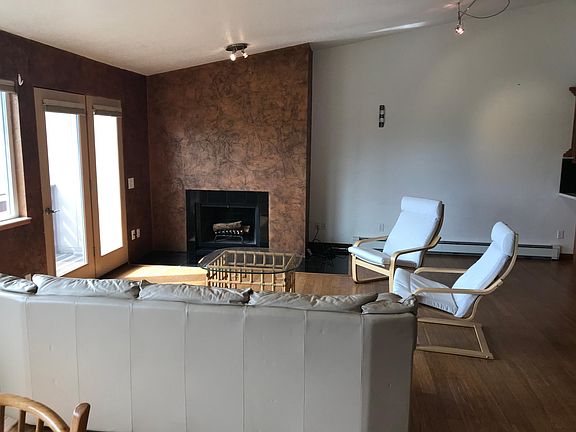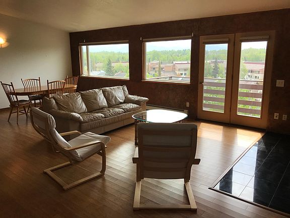 Bright and sunny second floor unit has large open floor plan with south facing windows, two decks, and great views of the Chugach. Beautiful, spacious kitchen with modern appliances. Master bedroom has walk-in closet, en suite bathroom, and private balcony. Includes in-unit front loading washer and dryer, storage locker for outdoor equipment, one heated garage bay, and dedicated off-street parking spots. All utilities included except electric. Shown furnishings available if desired. Small pets on approval with additional cleaning deposit. Non-smoking unit, utilities included with exception of electricity. One heated garage spot and one off-street parking spot included.