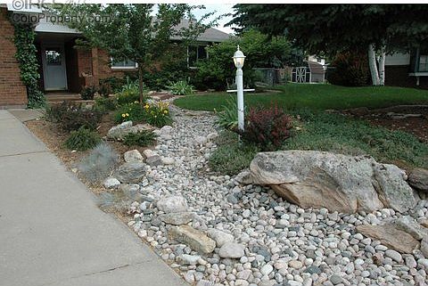Very nice sprawling ranch with 3 bedrooms and 2 baths. Beautifully landscaped with many gardens, sitting areas, covered deck, large gardening/workshop & addtl shed...backyard is truly an Oasis! Quiet cul-de-sac location, spacious rooms, pull-outs in kitchen cabinetry, centrally located in Loveland and all kinds of shopping. Oversized finished garage with cabinets. Home has been well taken care of and is in great condition. If you like an amazing yard, and privacy, you will love this home!