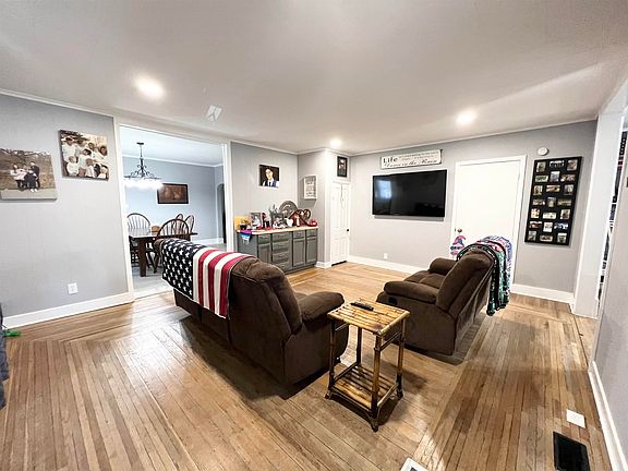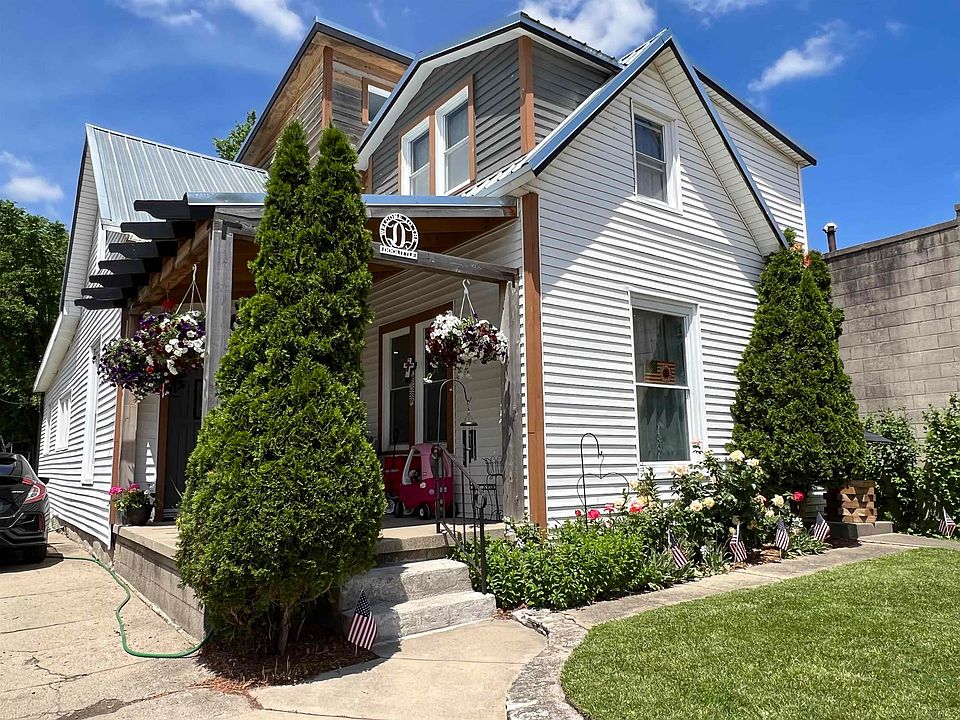 Here’s your chance to own this unique move in ready 4 bedroom, 2 bath modern rustic home. On the first floor you will find the living room, den, 2 bedrooms, full bath with tile surround, a rainfall shower and glass enclosure, laundry room, formal dining room with built in hutch, and kitchen with stainless steel appliances, island and custom cabinetry. The master suite is located upstairs, and offers a full bath, large walk in closet, make up area, wet bar and is adored with a vaulted ceiling. Off the master suite is a nursery or 4th bedroom. All bedrooms are spacious. Most upgrades have been competed within the last 3 years. Great space outside to entertain either on the covered front porch or on the back patio. Centrally located.