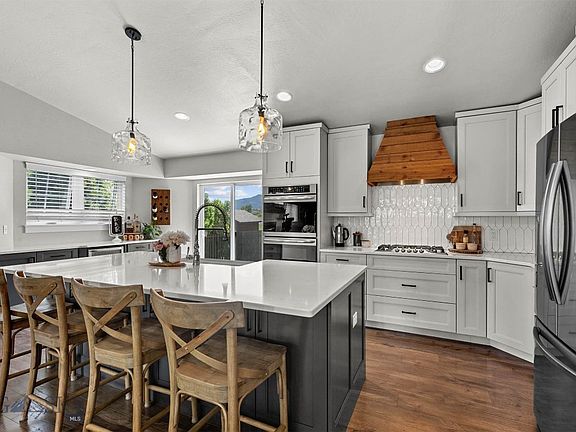 Don't miss this opportunity to live in arguably one of Bozeman's most desirable neighborhoods. 1220 E Curtiss is located just off of Main Street and within close proximity to downtown, Lindley Park, Bozeman Health Hospital, Pete's Hill, Town and Country Grocery, and backs up to the groomed Sunset Hills Nordic trails. Enjoy just a quick jaunt to the summer's weekly farmers market at Lindley Park as well as the annual Sweet Pea Festival in July. The tastefully designed home was completely remodeled in 2021 and features a warm and inviting kitchen and living room that is great for entertaining with vaulted ceilings, gas fireplace, dry bar with bev fridge, dining area, mountain views, and easy access to the large backyard patio. This kitchen checks all the boxes which includes a large island with a farm sink, cooktop, double oven, built-in microwave, vent hood, under cabinet lighting, and large pantry. The backyard oasis has a large concrete patio, mature landscaping, flat grass area, and direct access to Sunset Hills. The upstairs floorplan includes the primary suite, guest bedroom, guest bath, kitchen, living room, dining area and laundry room. The downstairs includes two guest bedrooms and guest bath AND also includes a locked off additional 2 bedroom and 1 bath apartment with a separate entry. The guest apartment could easily be used as part of the main home. The 2021 remodel included new windows, doors, trim, siding, retaining walls, Lennox furnace with A/C, all new kitchen, baths, wall texturing, and much more. This home won't last long. Schedule a showing today!